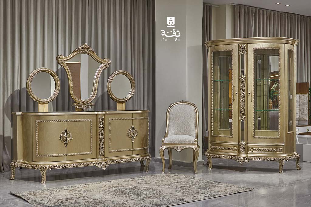وكما كنا مميزون في سفرة مودرن ٦ كراسي تميزنا ايضاً في سفرة نيو كلاسيك المصممة بطراز ملوكي فاخر وفخم.