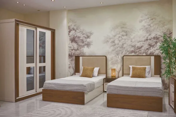 غرفة اطفال مودرن “غرفة اطفال لارين ” متوفرة الآن في معرض ثقة من ضمن كوليكشن غرفة أطفال بسريرين ودولاب ، اطلبها أونلاين أو شرفنا بزيارتك.