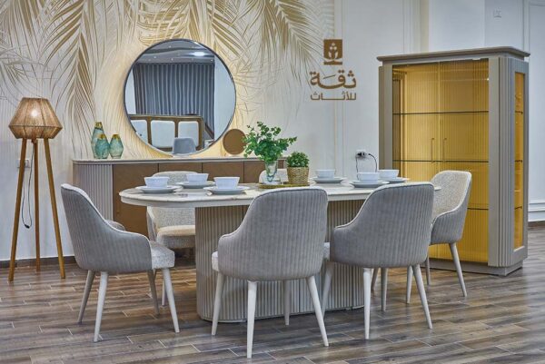 غرفة سفرة فيكتوريا ” سفرة رصاصي ” متوفرة الآن في معرض ثقة اطلبها أون لاين أو شرفنا بزيارتك.