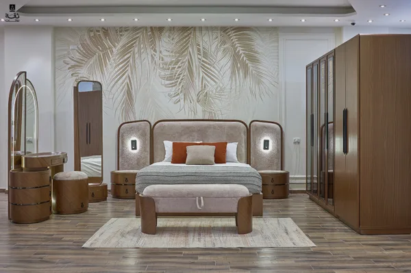 غرفة نوم بادجي هي غرفة نوم لون خشبي تأتي بتصميم عصري وألوان بُنيه مريحة للعين ، تجمع بين الهدوء والأناقة في تناغم فريد مما يجعلها المكان المثالي للاسترخاء بعد يوم طويل.