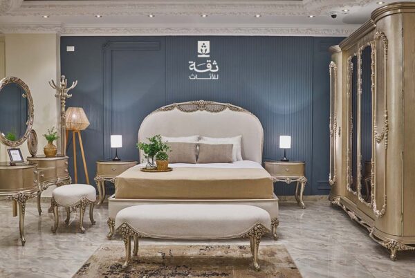 غرفة نوم زهور ” غرفة نوم ذهبي في بيج ” متوفرة الآن في معرض ثقة اطلبها أونلاين أو شرفنا بزيارتك.